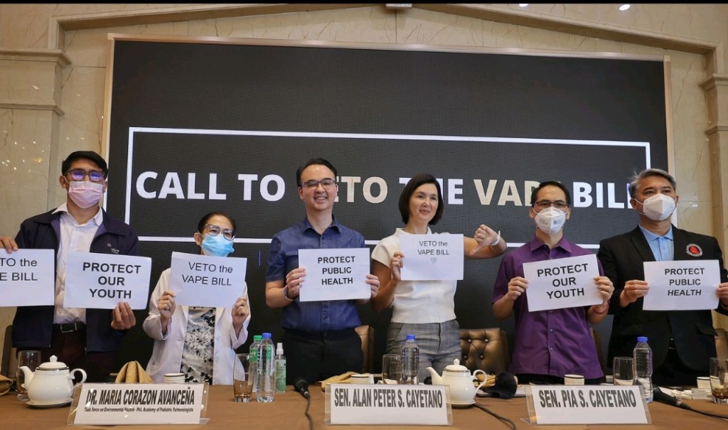 Sa isang pulong baliitan, nanawagan sina Senador Pia Cayetano at Senador Alan Peter Cayetano at ng mga grupo ng mga doktor at legal expert kay Pangulong Marcos na pakinggan at pag-aralan ang tunay na epekto ng vape sa kalusugan ng mga Filipino.