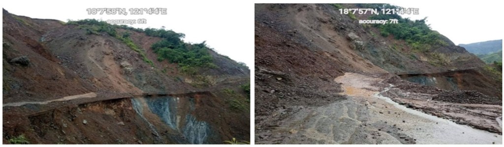 Kabilang dito ang Claveria-Calanasan- Kabugao Road, K0717+500-K0717+570, Namaltugan, Calanasan, Apayao dahil sa pagguho ng lupa; ang Mt. Province-Ilocos Sur via Tue, K0387+450 Beto Section, Tue, Tadian, Mt. Province dahil naman sa pagguho ng mga bato; ang Mt. Province- Ilocos Sur via Tue, K0387+450 Beto Section, Tue, Tadian, Mt. Province dahil sa landslide.