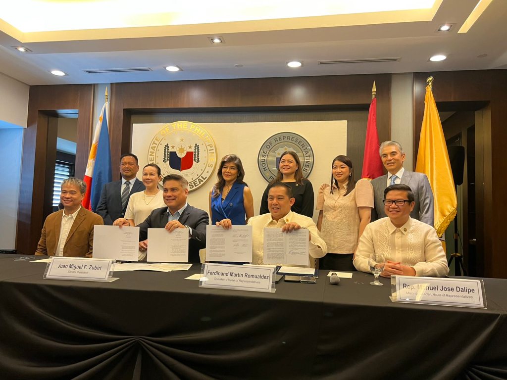 Ngayong umaga nang magpulong ang mga senador sa pangunguna nina Senate Majority Leader Juan Miguel Zubiri at House Speaker Ferdinand Martin Romualdez sa Manila Golf Club sa Makati City upang lagdaan ang dalawang enrolled bills na ipinadala kay Presidential Legislative Liaison Office Secretary Mark Llandro Mendoza na siyang nagsumite kay Pangulong Ferdinand “Bongbong” Marcos, Jr. para lagdaan at tuluyan nang maging batas.