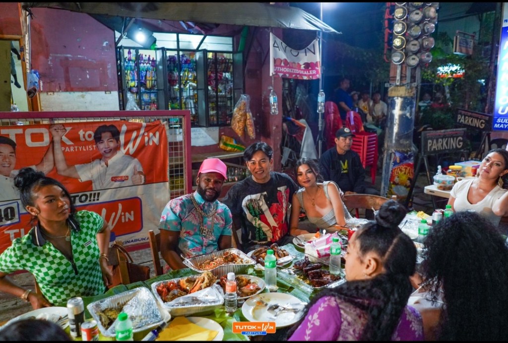 Tuwang-tuwa at aliw na aliw naman si Floyd Mayweather habang nakatambay sa isang kalye sa Sampaloc at nilatagan ni Verzosa ng mga pagkaing pangkaraniwang hinahanda ng mga Pilipino tuwing may salu-salo gaya ng inihaw na manok, hotdogs, at kanin.