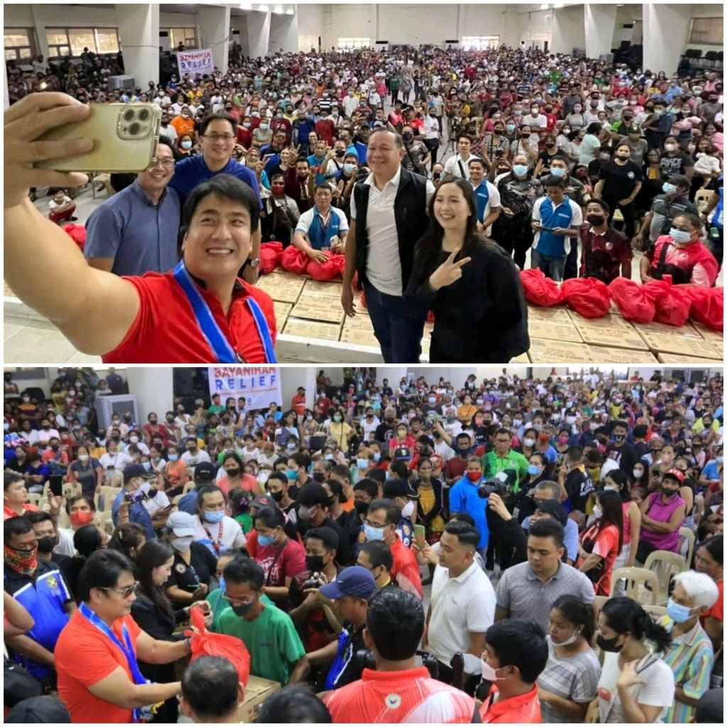 Kasama ni Revilla sina Mayor Ross Rizal at Cong. Cha Hernandez na namahagi ng libu-libong Family Food Packs at relief packs na inisa-isang iniabot ng senador sa lahat na natuwa dahil bukod sa tulong ay may libreng halik at yakap pa.