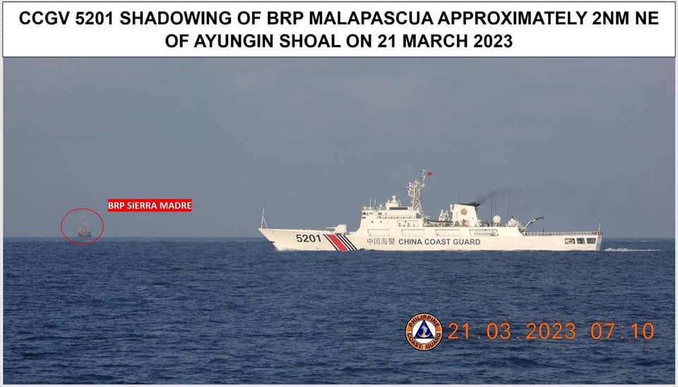 Tumugon naman ang CCGV 5201 na sundan ang BRP MALAPASCUA sa layong 1,600 yards di kalayuan sa Philippine Navy Vessel BRP SIERRA MADRE.