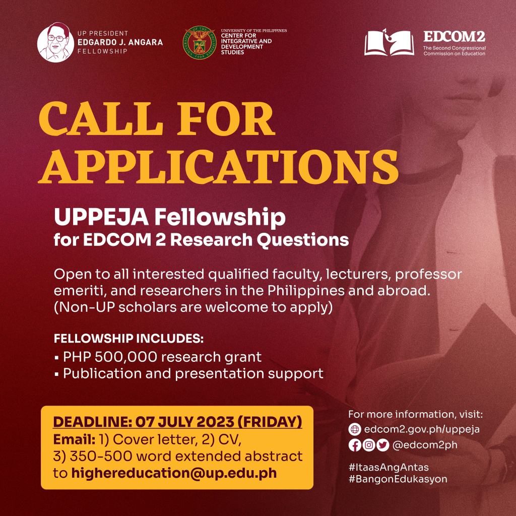 The full list of research questions, and more details about the Fellowship are listed on EDCOM 2’s website: www.edcom2.gov.ph/uppeja