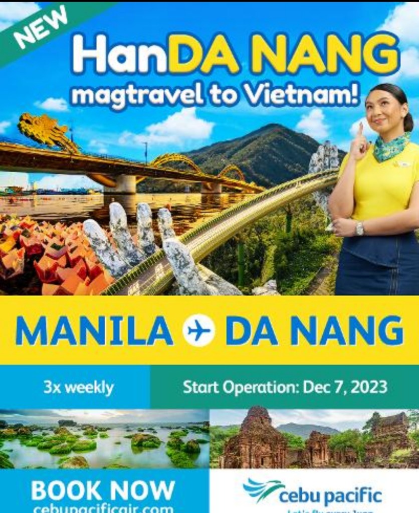Starting December 7, 2023, CEB’s Manila to Da Nang flights will operate thrice a week— every Tuesday, Thursday, and Saturday. The flight will depart Manila from 7:30 PM (PH time) and will arrive at 9:30 PM (Vietnam time).