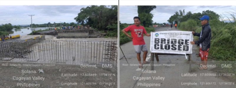 3) Claveria-Calanasan-Kabugao Road, sections sa Brgy. Namaltugan at Brgy. Ninoy, Calanasan, Apayao bunsod ng pagkahati ng kalsada at collapsed pavement;