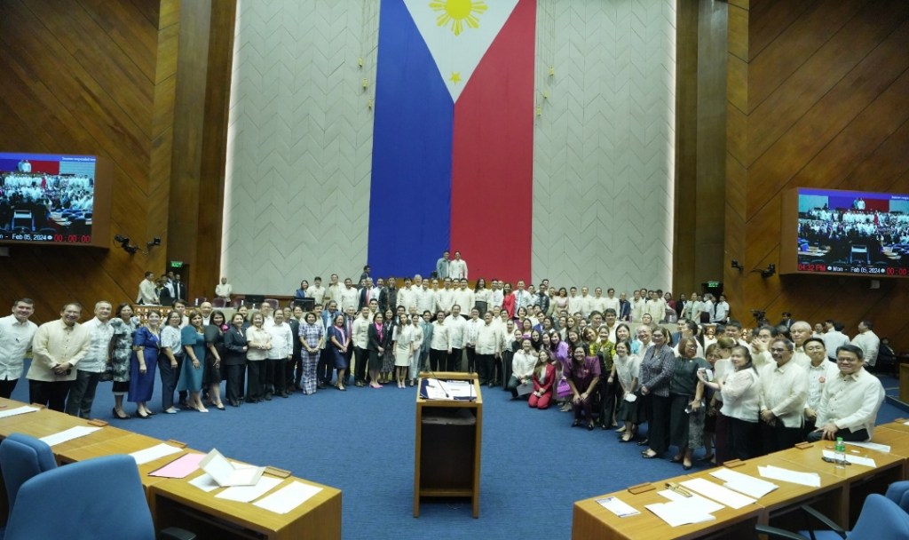Ang mga pinuno at miyembro ng Kamara na nagpakita ng suporta kay Speaker Ferdinand Martin G. Romualdez para sa isang larawan matapos na pagtibayin ng Kamara ang House Resolution No. 1562 na nagsasaad ng “hindi natitinag na pakikiisa at suporta” para sa Speaker at itinataguyod ang “integridad at dangal” ng Mababang Kapulungan ng Kongreso sa sesyon ng plenaryo Lunes (Ene. 5, 2024).