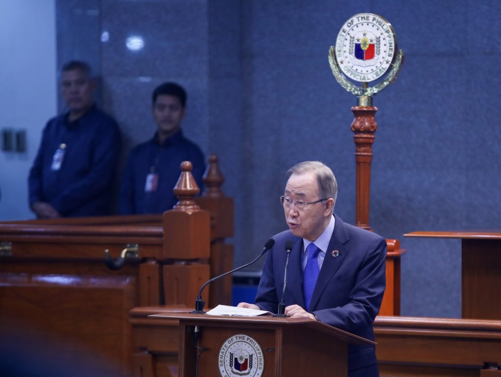 Sa Senate Resolution No. 929, na inihain ni Senate President Pro-tempore Loren Legarda, nagkakaisa ang mga senador na kilalanin ang magandang nagawa ni Ban dahil sa “outstanding global contributions” nito